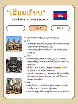 • 从曼谷(DMK/BKK)直飞暹粒国际机场(REP)✈️ 仅需约1小时!