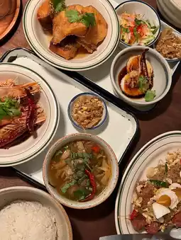 菜品种类丰富,令人满足。虽然是一家粥店,但其菜肴的口味和摆盘却十分出色。招牌菜包括外酥里嫩的鱼露炸五花肉,搭配热腾腾的粥,堪称绝配。酸辣鸭腿汤味道浓郁独特,而椒盐软壳蟹也与粥完美搭配。这家餐厅还提供炒菜、咖喱、汤和其他泰式菜肴,所有食材均经过精心挑选,口味完美平衡。
