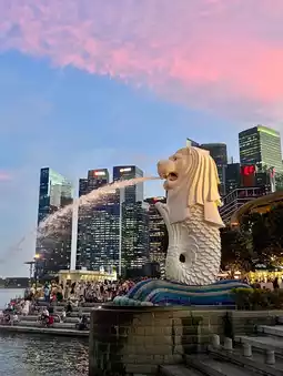 - 必做:借用鱼尾狮雕像的喷水口,拍摄创意照片,俯瞰滨海湾全景。
