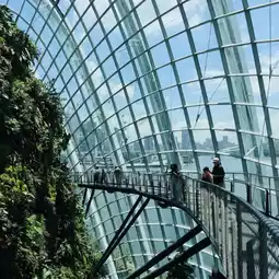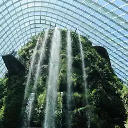 模拟了南美洲和非洲热带山区及高海拔地区的凉爽湿润气候。进入云雾林,您会看到一座30米高的室内瀑布,周围环绕着雾气,营造出梦幻般的氛围。这里也是滨海湾花园最热门的拍照地点。
