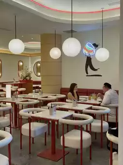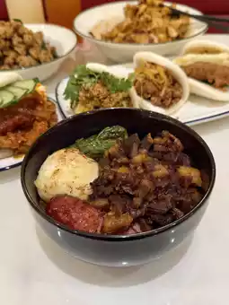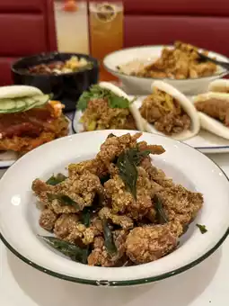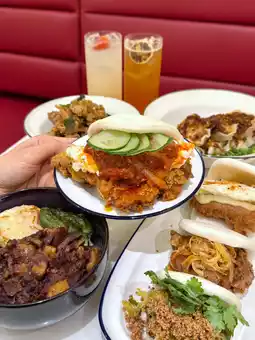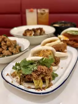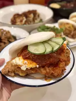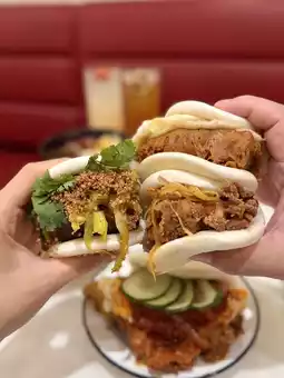 ,这家新店更加宽敞明亮,充满活力。餐厅以醒目的复古红色为主色调,并融入现代元素,营造出既充满活力又温馨舒适的氛围,与他们充满创意和趣味的菜肴完美契合。在他们最新的创意菜品中,椰浆饭包脱颖而出——酥脆的炸馒头包裹着自制的椰浆饭叁巴酱和清爽的黄瓜片,为这道深受当地人喜爱的美食带来了既怀旧又清新的全新体验。如果您难以抉择,不妨试试迷你三件套,一次品尝三种招牌包子——非常适合与朋友分享,或者独自享受多种口味。