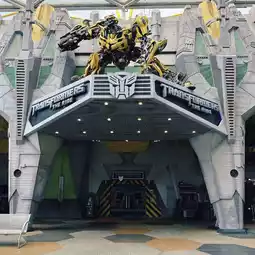 特效秀 — 全程英文。快速通行证持有者在第二排排队,普通票持有者在第一排和第三排排队。建议第一排前半部分不要离栏杆太近,以免被水溅到💦。3️⃣ 变形金刚