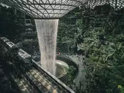 樟宜机场星耀樟宜的雨漩涡 (Rain Vortex) 完美融合了自然、建筑与创新,令人叹为观止。作为世界最高的室内瀑布,它从40米高处倾泻而下,穿过郁郁葱葱的室内热带雨林,营造出宁静而又令人敬畏的氛围。白天,奔腾的水流与熙熙攘攘的机场环境形成鲜明对比,带来清爽之感;夜晚,它则化身为一场璀璨夺目的灯光秀。星耀樟宜瀑布 (Jewel Waterfall) 周围环绕着葱郁的花园、步行道和世界一流的设施,它不仅仅是一个景点,更是一次重新定义机场体验的旅程。对于旅行者和当地居民来说,这都是一处不容错过的奇观。