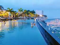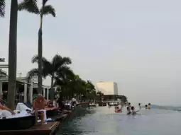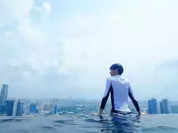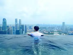 提到滨海湾金沙酒店,首先映入脑海的便是无边泳池。除了待在房间里的时间,我大部分时间都泡在无边泳池里。