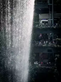 星耀樟宜的标志性景观!这座人工瀑布从七层楼高的塔楼倾泻而下。白天,阳光倾泻而下,营造出清爽宜人的氛围;夜晚,灯光秀则带来梦幻般的视觉享受。