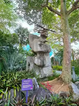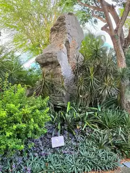在滨海湾花园的峡谷中,一座引人注目的蜻蜓雕像巍然耸立,宛如守护者,俯瞰着这片岩石与植物交织的王国。它金属质感的翅膀在光线下闪烁,俯瞰着一片崎岖的地貌,那里壮丽的岩石群落环抱着郁郁葱葱的绿植。雕像周围,耐寒的多肉植物、娇嫩的花朵和蔓生的藤蔓在岩石间蜿蜒交织,构成了一幅生机勃勃的画卷。这座雕像既神秘又充满守护之感,守护着这片艺术、自然与想象力完美融合的乐土。