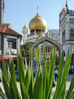 我参观了位于新加坡甘榜格南地区的标志性建筑——苏丹清真寺🕌。即使远观,金色的圆顶也十分引人注目;近看,它更是宏伟壮丽,与洁白的外墙相映成趣。清真寺附近有哈芝巷和阿拉伯街,是休闲漫步的好去处。