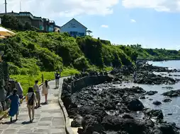 这家咖啡馆位于济州岛最大的花园里,掩映在树林之间。