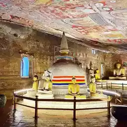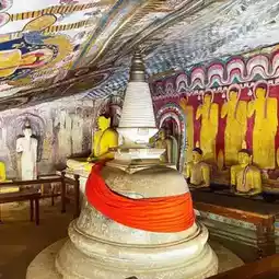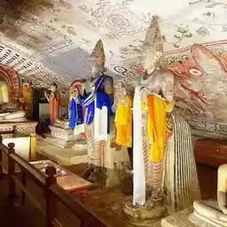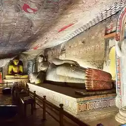#假期行程 位于斯里兰卡中央省的丹布勒皇家石窟寺是斯里兰卡最珍贵的文化地标之一。它也被称为丹布勒石窟寺,是联合国教科文组织世界遗产,带您深入探索这座岛屿的精神和艺术遗产。在石窟内,您会发现墙壁和天花板上布满了精美的佛教壁画,以及超过150尊姿态各异的佛像。这里氛围宁静祥和,摇曳的灯光更增添了漫步于各个洞室时的神圣感。