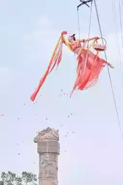 穿过神圣的火坛,来到祭祀祖先、祈福祈福的祠堂(燕神农殿),燕神农殿庄严肃穆,气势恢宏。祭祀仪式进行到殿前时,仙女们会飞越广场,撒下花瓣。情景剧《燕王颂》生动地展现了燕王教百姓耕作、品尝百草的功绩。广场东侧,一座高达95英尺的燕神农雕像巍然屹立,手持麦穗,目光远眺,仿佛仍在守护着这片土地。
