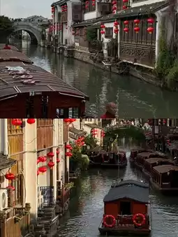 明清时期的传统建筑在这里得以完整保存:白墙灰瓦、石桥石桥、蜿蜒曲折的小巷。贡多拉式的船只在河面上缓缓穿梭,纪念品商店、茶馆和传统餐厅林立于河岸边。💡