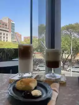 这里的咖啡香气浓郁,很可能是用本地烘焙的咖啡豆制作的。三种口味的司康饼(原味、蔓越莓味等)都是新鲜出炉,口感和香气都非常棒。