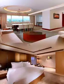 酒店客房配备空调、迷你吧、书桌、卫星/有线电视、液晶/等离子电视、室内保险箱、独立淋浴间和浴缸、吹风机、起居室、茶/咖啡机、熨烫设施等。此外,酒店还提供免费无线网络、室外游泳池、餐厅、健身中心、水疗中心、客房送餐服务等。