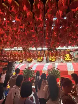 据说,2009年,庙里工作人员梦中得到城隍的指示,开始在一楼供奉五财神和虎王。由于其灵验的名声日渐显赫,越来越多的企业和个人前来祈求财运。我们到访的那天恰逢中财神的诞辰祭祀,庙内人头攒动,热闹非凡。黑虎将军尤其被认为守护着金元宝山,因此深受股票投资者的喜爱。
