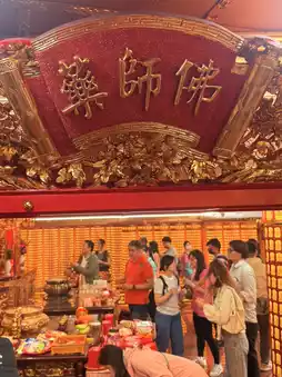 二楼供奉着药师佛和媒婆,融合了佛教和道教文化,别具一格。一楼的侧殿供奉着大君和地神,祈求平安、财富、爱情和健康。这座寺庙已成为松山区重要的信仰中心。📍
