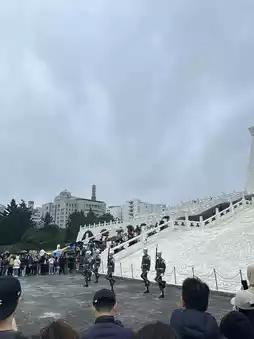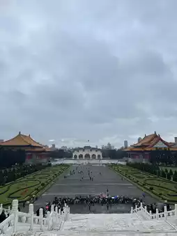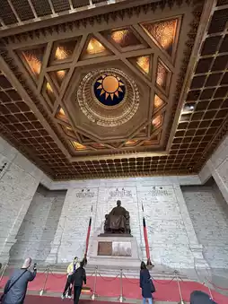 我白天顺道去了中正纪念堂。穿过大门,眼前豁然开朗,一片宽敞的广场映入眼帘,广场尽头是一座庄严的白色建筑。蓝色的屋顶在蓝天的映衬下格外醒目,即使远观也清晰可见。我拾级而上,进入纪念堂,只见一尊巨大的中正雕像静静地端坐其中,营造出一种难以言喻的肃穆氛围。正值换岗仪式,雕像无声地移动着,令我印象深刻。纪念堂的庭院比我想象中更加宁静,人们在长椅上休憩拍照。虽然是旅游景点,但却有着城市广场般的氛围,让人感到舒适惬意。纪念堂内部也十分宽敞,值得一看,很高兴我今天有机会来到这里。