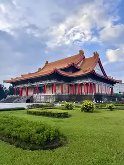是为了纪念台湾首任总统蒋介石而建。纪念堂于蒋介石逝世一年后的1976年开始建造,并于1980年竣工。蓝白相间的建筑象征着台湾国旗的颜色,穹顶则象征着国旗上的十二道光芒。除了主殿之外,纪念堂内还设有国家戏剧院和国家音乐厅。游客可以观看每小时整点举行的卫兵换岗仪式,时间为上午9点至下午5点,持续约五分钟。