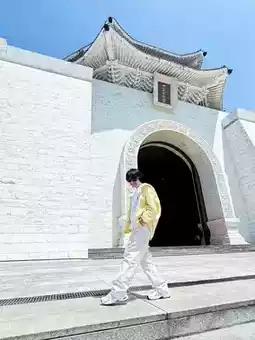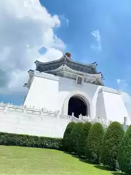 🔆这里是纪念馆。白底蓝瓦的建筑高耸入云。