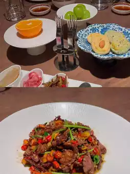 酒店位于台州市黄岩区,周边环境不算繁华,也不是核心城区,但旁边就有购物中心,生活和外卖资源都很丰富。酒店大堂有两层楼高,晚上灯光比较昏暗,风格类似CCD,也和宁海喜来登类似,但略逊一筹。中餐厅的蒜蓉豆瓣面很好吃,服务也很棒。早餐印象一般,但户外用餐区视野开阔,有橘子树和花园,景色不错。去了国庆寺,可惜没进去,因为关门了。周围环境挺适合散步的。在永泉镇买的蜜橘虽然贵,但是很甜。邓紫棋的工作人员在台州演唱会期间就住在这家酒店。台州拥有丰富的旅游资源和美食,例如美味又实惠的雪军小吃摊。然而,这家酒店不在市中心,所以交通稍远。但优质的餐饮和服务弥补了这一不足。总分:7分。