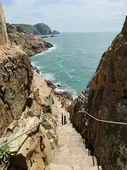 清晨,您可以攀登到高处观赏日出,当太阳从地平线缓缓升起,将整个海面染成一片金色。下午,您可以漫步岛上,欣赏海蚀洞、悬崖和天然海湾。夜晚,繁星闪烁,远处渔灯摇曳,仿佛置身于一幅静谧的画卷之中。——