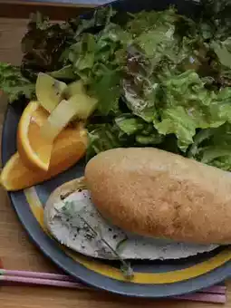水果和沙拉非常新鲜,水果有橙子和金奇异果,酸甜可口,吃起来非常清爽。一边欣赏着宜人的海景,一边享用美食,充满了夏日风情👒☀️。面包烤得酥脆,配上鲭鱼和奶油芝士酱,味道非常均衡,不油腻,是一顿非常清淡的午餐~