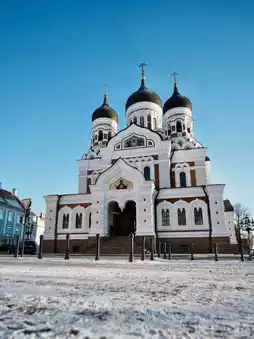 站在托姆比亚山顶,我们俯瞰着这座对比鲜明的城市——东正教的圆顶和中世纪的塔楼与现代建筑交相辉映。亚历山大·涅夫斯基大教堂巍峨耸立,装饰华丽,钟声如同冬日般深沉。