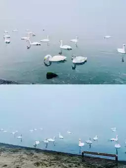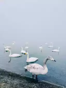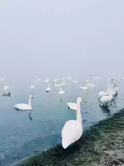 屈斜路湖位于日本北海道阿寒摩周国立公园内,是日本最大的火山口湖。冬季的屈斜路湖别有一番风味。空气中弥漫着寒意,但也吸引了许多来自西伯利亚的候鸟在此栖息,为这片静谧的湖泊增添了活力。