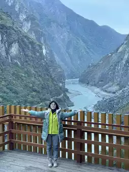 虎跳峡位于云南省丽江和香格里拉之间,是中国最深的峡谷之一。清晨,我们直奔虎跳峡上游,欣赏奔腾咆哮的金沙江和雄伟壮丽的悬崖峭壁,这可是吸引众多游客的主要景点。相传,曾有一只老虎从山上下来,从河中的一块岩石上纵身一跃,轻松渡过峡谷。从此,峡谷便被称为“虎跳峡”,河中的岩石也被称为“虎跳石”。