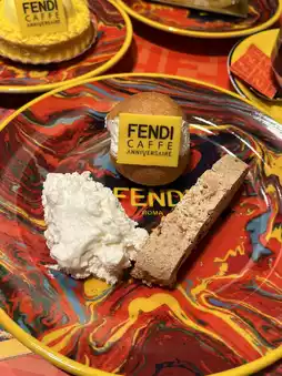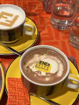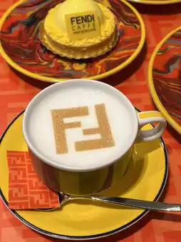 蛋糕不仅美味可口,而且摆盘精美,FENDI 的标志更营造出一种别致的氛围。咖啡馆时尚的装潢和优雅的环境,让人感觉仿佛置身于一处特别的世外桃源。