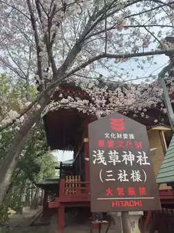 浅草神社建筑风格典雅,与周围的浅草寺相映成趣。通往神社的道路两旁樱花盛开,春季吸引众多游客前来赏花。每年都会举办盛大的祭典,吸引众多信众和游客前来体验日本传统文化。