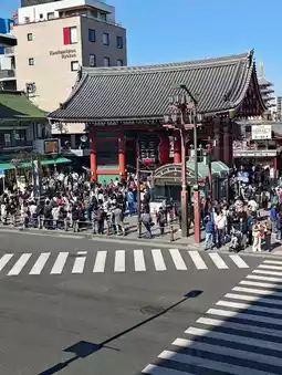至5层为私人会议室,不对公众开放,其他楼层则对游客开放。1层和2层设有旅游咨询区,6层和7层为多功能空间和展览区。8层设有浅草观景台。1层设有旅游咨询服务中心,提供日语、中文、英语和韩语的多语种服务。中心还提供免费Wi-Fi、充电站和行李寄存服务,是您旅途中休息、放松或充电的理想场所。2层设有大型玻璃观景台,可欣赏雷门美景,并设有哺乳室。游客可以从一楼乘坐电梯前往八楼的观景台,但排队时间可能较长,需要一些耐心。到达八楼后,您可以直接欣赏到浅草寺和远处东京晴空塔的景色。除了免费的观景台外,八楼还设有一家风景优美的咖啡厅,您可以在那里欣赏浅草寺的景色。不过,座位有限,尤其是在周末。虽然观景台经常人潮涌动,但游客通常不会久留。您也可以前往二楼的观景台,观看雷门前熙熙攘攘的人群和人力车,也别有一番乐趣。