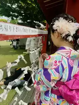 一边闻着香火一边许愿,还花了100日元抽了个御神签!