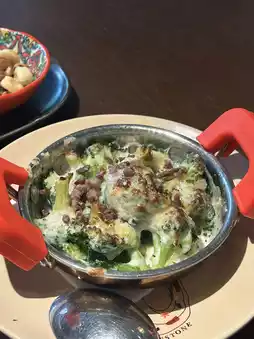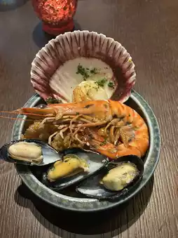 海鲜饭鲜美无比,四人份售价7380日元。西班牙风味土豆煎蛋卷和西兰花火腿焗烤也很棒。