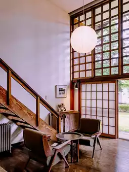 隐匿于东京小金井市江户东京建筑博物馆内的前川邦男故居,宛如一首静默的建筑诗篇。这座建于1942年的木结构建筑,是日本首位混凝土建筑大师前川邦男在钢铁资源匮乏的年代创作的杰作。94坪的空间内,南北走向的高挑大厅,格子窗将阳光切割成诗意的光影,障子门则巧妙地框住了窗外的景色,完美展现了“日西融合”的精髓。
