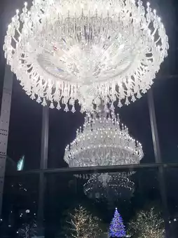 冬季,世界最大的巴卡拉水晶吊灯矗立在中心广场,令人叹为观止。这盏高达5米、宽3米的璀璨吊灯,光芒四射,令人屏息。250盏灯和8500颗水晶点亮了冬夜的星空。