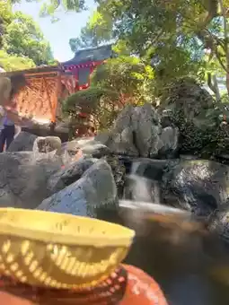离开弁财天后,别忘了在龙王面前洗钱以求好运。这里有一个筛子,可以用流水冲洗钱币,祈求财源滚滚。农历新年期间,许多中国人会来这里向龙王祈求财富。📍