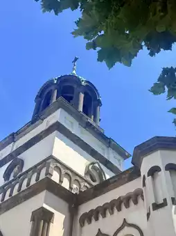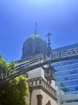 那天天气非常炎热,但进入教堂后,即使有风扇,我也丝毫感觉不到热。沐浴在阳光下的彩色玻璃窗营造出一种神圣而宁静的氛围。内部禁止拍照,但高挑的天花板、祭坛后的圣像屏以及贴满金银箔的墙壁营造出一种异域风情。开放时间为周一至周五下午1:00至3:30。工作人员热情友好,来自一个祖辈经营的家庭。📍