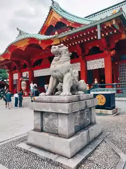 神社的历史可以追溯到1270年前,但目前的建筑曾因火灾和地震多次重建。它坐落在东京最昂贵的住宅区之一。