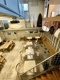 SANU NOWHERE 咖啡馆距离中目黑站仅几步之遥,宛如一处隐秘的世外桃源。入口处绿意盎然,营造出静谧的氛围;步入其中,挑高的天花板和开阔的空间让人不禁想要深呼吸,久久停留。