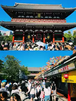 支持 在东京旅行期间,我参观了浅草寺。当我穿过红灯笼点缀的雷门,漫步在仲见世商店街时,我对这次旅行的兴奋之情瞬间涌上心头。传统小吃和纪念品商店鳞次栉比,让人流连忘返,也是拍照的好地方。在主殿里,我静静地闻着香火的气息,即使身处繁华都市,也感受到了一份宁静。