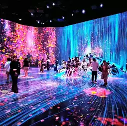 :• 互动艺术作品:许多区域运用投影仪、电脑和传感器来检测游客的动作,营造出随着您走动或触摸而实时变化的环境。