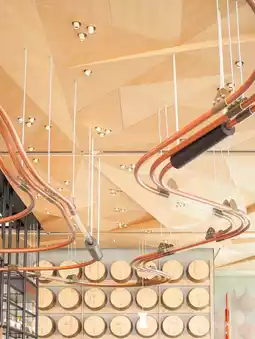 樱花季到来之前,可以先欣赏一下悬挂在店内中央、从顶楼一直延伸到地面的2100件手工雕刻作品😍