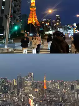 日落之后,公园的景色则截然不同。随着东京塔的灯光一盏盏亮起,整座城市沐浴在金色的光辉之中。🌙 从观景台俯瞰东京的夜景令人叹为观止,仿佛繁星点点,洒落在城市上空。东京的一天完美无瑕,白天的温暖与夜晚的璀璨交相辉映。✨