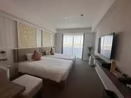 这家新开业的酒店拥有宽敞舒适的客房。海景房配有小阳台,浴室设有浴缸。屋顶酒吧提供无限畅饮的饮品和小吃,露天温泉和恒温泳池则能让您尽享放松体验。您可以在泳池边休憩,欣赏附近那霸机场的飞机起降✈️。酒店对面还有一个棒球场,您可以去那里打棒球。室内休息区氛围奢华,是您在星空下享受美好夜晚的理想之选🌃。一定要来这里住一晚!价格为3700日元(未来可能会有所变动),但性价比极高。强烈推荐给大家👍🏻。建议自驾前往。
