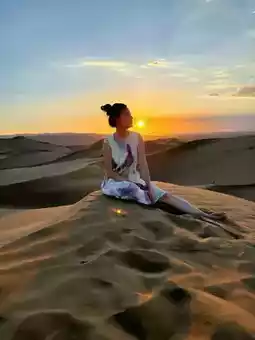最佳日落地点:山顶 ⛰️ 需要乘坐越野车,票价160元/人,身高1.4米以下儿童130元/人,体验不错,也可以选择骑骆驼🐫,记得戴口罩,尖叫时尤其重要,否则可能会吃到沙子🎵