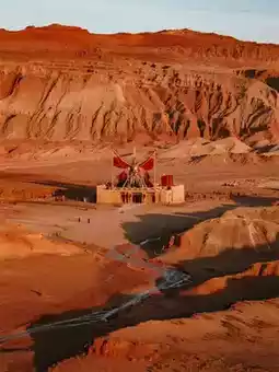 ❷ 火焰山背面:以城堡拱门为前景,避开拥挤的人群,无人机拍摄效果更佳!
