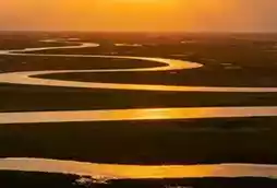 ;伦台白杨林:傍晚斜阳下金色的树影;