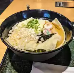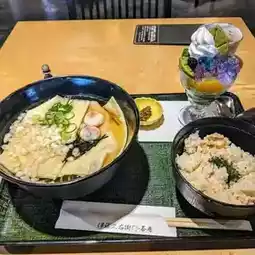 主菜是抹茶拉面。绿面条散发着淡淡的抹茶香气,配上宽而长的豆腐皮,拿起来感觉很长!整体调味比较清淡,更注重氛围。纪念品区也很有趣,琳琅满目的抹茶产品让人眼花缭乱。