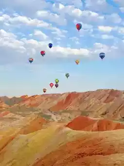 热气球飞越五彩丹霞