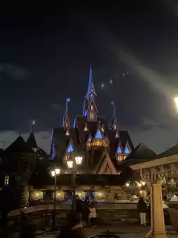 当你走进冰雪王国,你会看到阿伦黛尔城堡高耸入云,美得如同动画中走出来一般!🏰✨ 周围环绕着北欧风情的村庄,遍布着与电影中风格一致的商店和餐厅。🏡🌲 特别之处在于艾莎的魔法冰雪,它营造出一种奇幻的氛围,让你感觉仿佛置身于冰雪王国之中。❄️💫